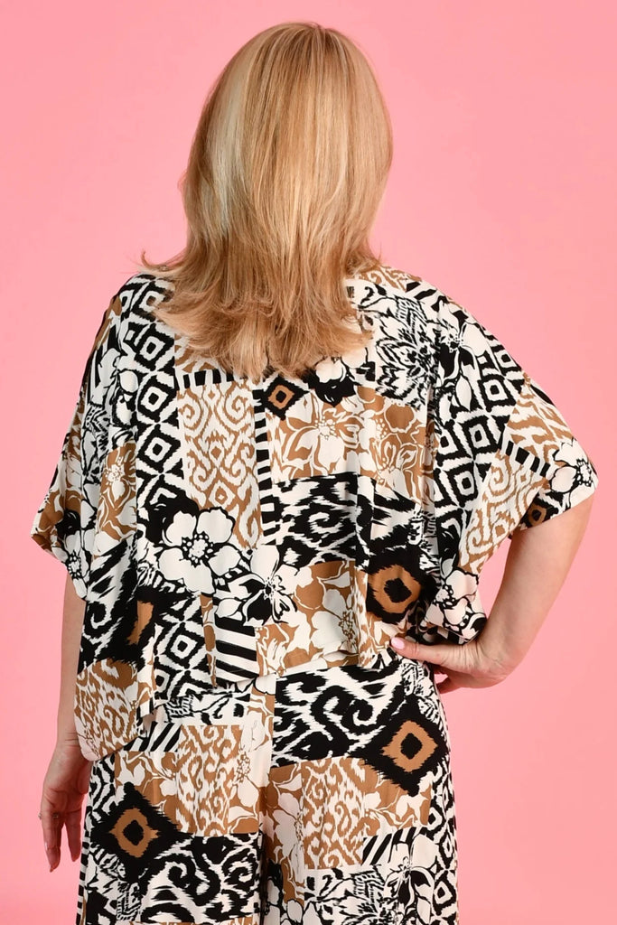 Bodacious Sydney Top Abstract Hibiscus Black/Gold VBLT011