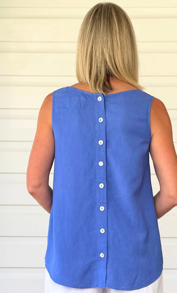 Gordon Smith Lino Button Back Cami Sardinia Blue 48122