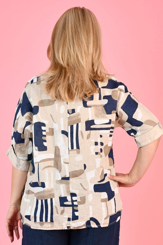 La Sofia Vino Linen Top Geometric Ivory VLST992