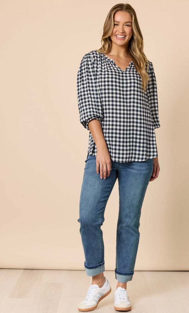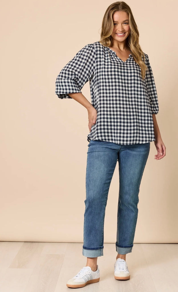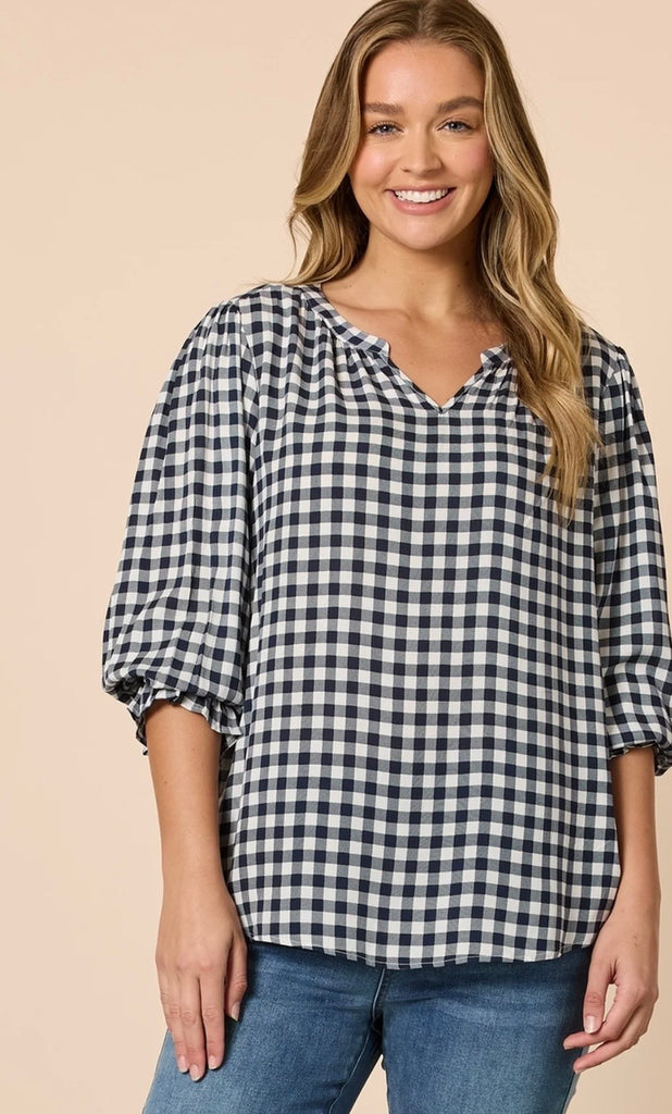Threadz Gingham Check Print Top Navy/Ivory 48937
